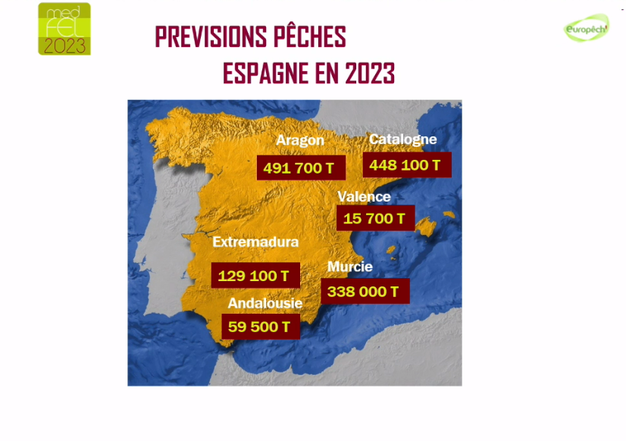 Cifras de 2022 a título comparativo: 228.800 t para Francia, 1.033.100 t para España, 1.014.200 t para Italia y 699.300 t para Grecia.