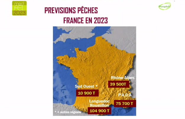 Cifras de 2022 a título comparativo: Ródano-Alpes 42.300 t, Suroeste 15.400 t, PACA 73.000 t y Languedoc Rosellón 99.100 t.