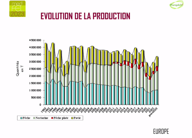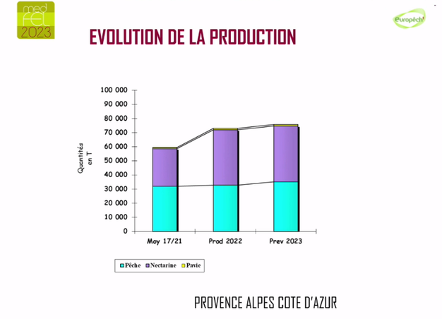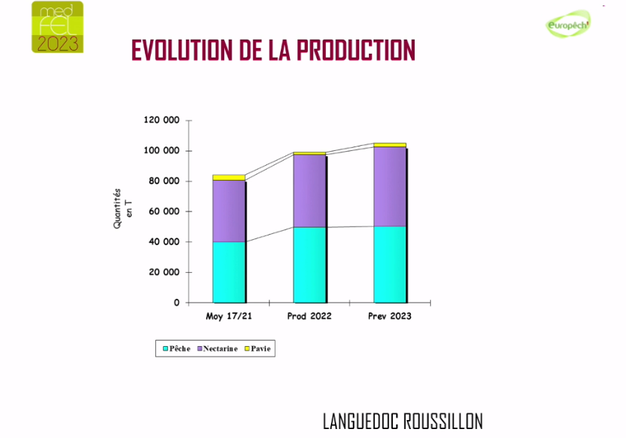 Tras dos años de déficit debido a problemas meteorológicos, el año 2022 fue muy positivo para la producción francesa tanto en términos de producción como de comercialización y, en particular, gracias a una competencia española muy débil. Algunos calibres más pequeños pero una calidad gustativa excepcional, como recuerda Bruno Darnaud. En cuanto al mercado, "¡el consumidor estuvo muy presente!". El consumo se vio estimulado por una actividad promocional muy importante de la distribución.