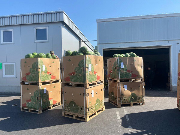 Desde finales de abril, la empresa Fresh Maximum GmbH, radicada en Stuttgart, tiene disponibles sandías frescas procedentes de Marruecos, como nos cuenta su director gerente júnior Enes Cakmak. "Recibimos de cinco a siete camiones semanales, lo que equivale a unas 150 toneladas. Además, también ofrecemos sandías sin semillas de España además de producto de Turquía".