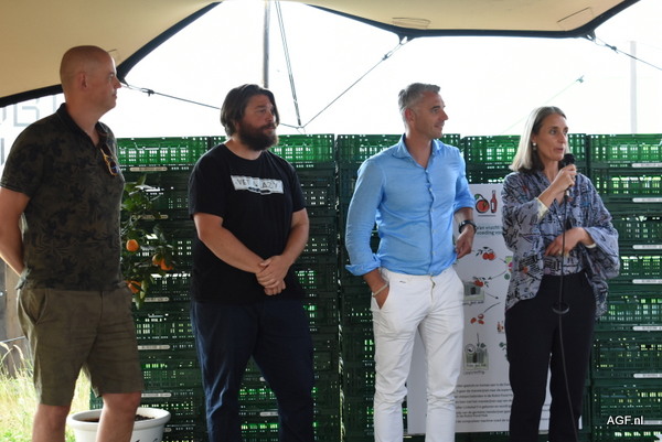 Lennart van den Heuvel (Olympic Fruit), Dineke van Meeuwen (Fruitpacking District) y Thijs van den Heuvel (Olympic Fruit)