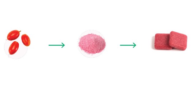 El proceso de transformación de la berry milagrosa en Mini Squares.