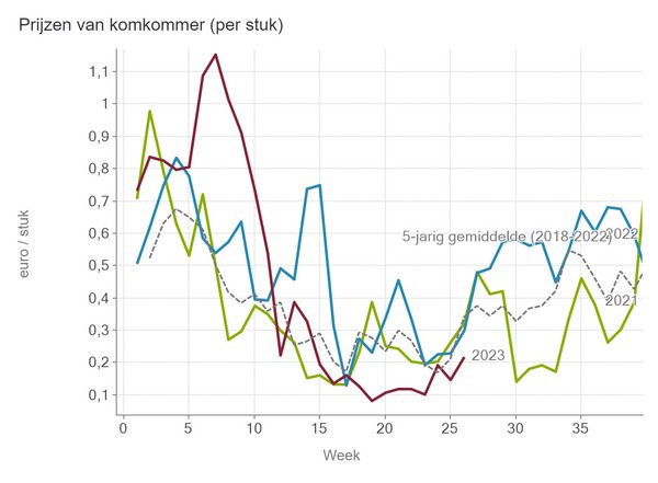 Todas las cifras se pueden consultar a través de www.vlaanderen.be/landbouwcijfers. Los precios medios de las hortalizas en las subastas de la VBT de la semana 26 se pueden consultar aquí y los de la fruta aquí.