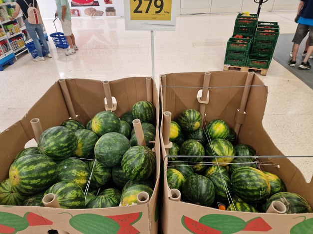 El inicio más lento de la campaña supone que esta semana los productores locales no han podido atender toda la demanda de Hungría. "En todas partes encontramos una parte de sandía húngara y otra parte importada. La calidad y los volúmenes de la oferta de sandía crecen día tras día, en unos pocos días ya no harán falta importaciones, solo producción local. Los productores empezaron a cosechar a mediados de la semana pasada en pequeñas cantidades. Ahora, los volúmenes han empezado a aumentar. Los camiones pueden llevar cantidades suficientes de sandías al mercado mayorista y al detallista. La gran distribución húngara está promocionando la sandía a precios aceptables".