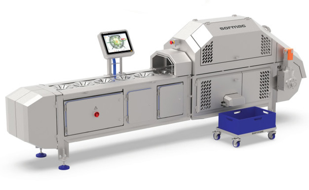 “OptiCor es única porque el mecanismo de descorazonado se encuentra debajo del producto. Esto garantiza una separación al 100% del producto y del flujo de residuos”, explica Jeroen Thijssen, gerente de I&D de Sormac. “Para que esto sea posible se ha desarrollado un sistema de posicionamiento con cámara. Con ayuda de la pantalla, el operador puede posicionar el cogollo fácilmente dentro de la tolerancia establecida. A continuación, el cogollo es descorazonado perfectamente y dividido en 2, 4 o 8 partes”.