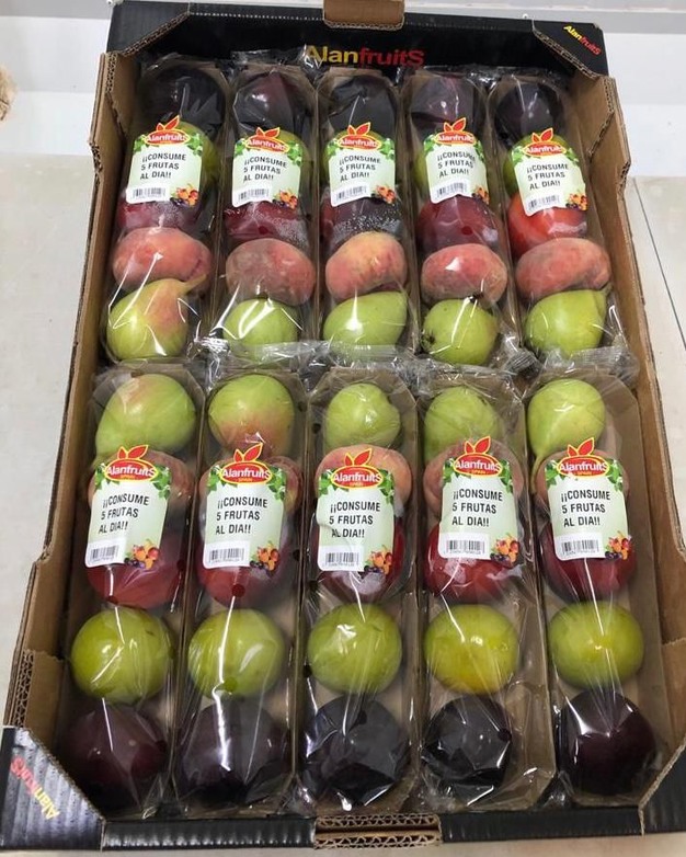 “Con la filosofía de inculcar al consumidor la necesidad de consumir 5 piezas de fruta al día, dimos con la idea de realizar este tipo presentación y envasado diferenciador”, explica. “No es una tarea sencilla, ya que después de llevar a cabo el precalibrado de la fruta, realizamos un envasado más manual y artesano de las frutas para que el resultado sea lo más homogéneo posible”. Este formato se envasa con la marca Alanfruits.