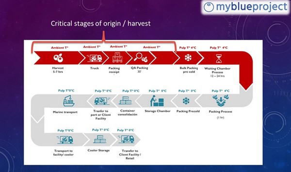 No hay ningún secreto que permita ganar calidad durante el proceso, explica Del Valle. "Ganar calidad, per se, es imposible. Lo que debemos hacer es trabajar para preservar la calidad de la cosecha. Podemos decir en este punto que las etapas críticas son hasta el preenfriado, bajando la temperatura lo antes posible. Como se puede ver en el diagrama, lo marcado en rojo es crítico, después entra en juego la selección, la gestión de la línea de manipulado y el almacenamiento".