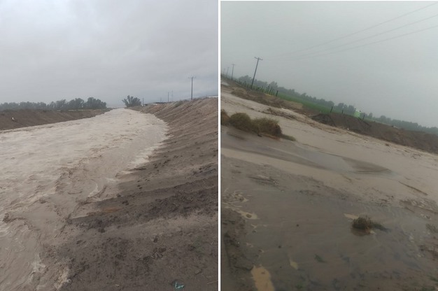 En Baloian Farms durante el fin de semana, la lluvia y las inundaciones se vieron alrededor de los campos y arroyos en Baja, México. "Hay avenidas alrededor de los ranchos por donde movemos el equipo de campo y las cuadrillas viajan para llegar al trabajo", dice Jay Angulo, de Baloian. "Esas vías fueron inaccesibles durante el fin de semana debido a la lluvia y las inundaciones. Sin embargo, actualmente la inundación ha remitido y las avenidas siguen embarradas".