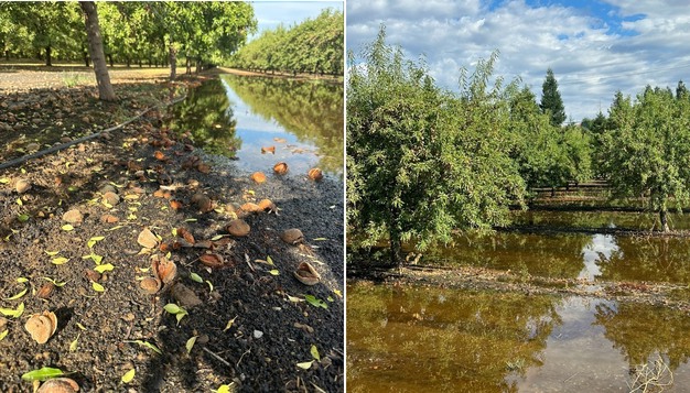 También hay retrasos en la cosecha. Bikram Hundal, de Custom Almonds LLC, dice que los condados del sur de Tulare y Kern vieron 25-40 mm de lluvia. "Muchas almendras ya se habían sacudido y estaban en el suelo y les llovió encima", explica. "Estoy estimando al menos cuatro o cinco días de retraso en la cosecha o tal vez más en algunas zonas. Los frutos están húmedos ahora y eso podría crear un poco más de presión sobre los pocos manipuladores que tienen compromisos de envío. No podrán realizar los envíos a tiempo". También señala que la cosecha, que acababa de empezar, ya llevaba retraso y se retrasará aún más. "También puede haber problemas de moho si no se secan las almendras. Las cosechadoras estarán bajo mucha presión", añade.