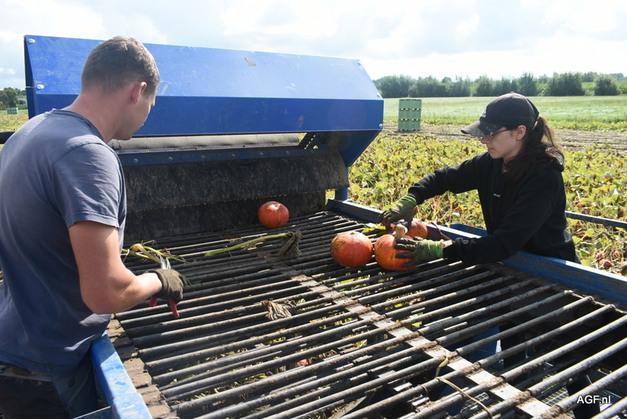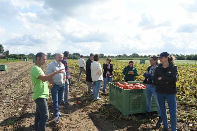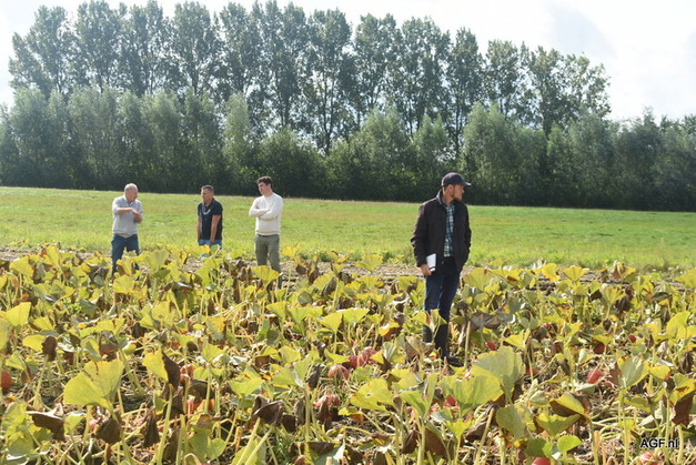 La cooperativa ha querido aprovechar el Día de la Calabaza para reflexionar sobre el potencial de este producto y ofrecer una visita guiada a la explotación de Jeroen e Isle, que cultivan calabazas en unas 64 hectáreas y tienen también una pequeña sección con kiwis. Además, disponen de la primera cosechadora de calabazas de Europa.