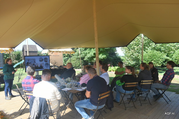 Los visitantes tuvieron la oportunidad de verla en funcionamiento. "Cosechar de manera mecánica es cada vez más importante", explicó Jeroen durante la visita al campo. "Dada la escasez de personal y la velocidad de recolección, que nos permite compensar mejor el aumento de los costes. Otro aspecto importante es que hace más fácil mantener estables las ventas".