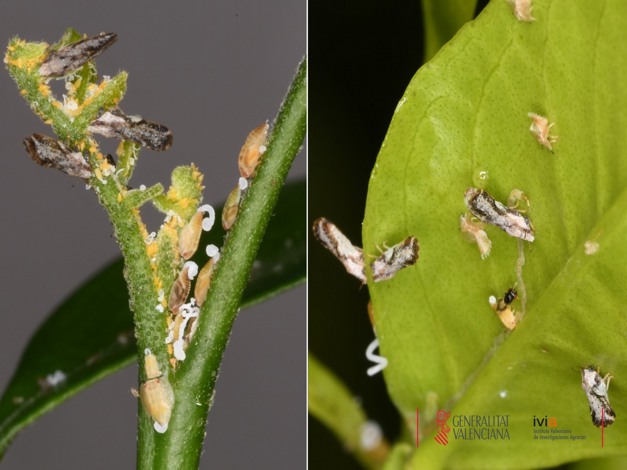 A diferencia de la psila africana (T. erytreae), que causa daños directos en los árboles (las ninfas se alimentan de la savia de las rutáceas y provocan llamativas deformaciones en las hojas), Diaphorina citri por sí misma no es una plaga dañina, pero eso la convierte en más ‘sigilosa’, más complicada de detectar. Además, un estudio del Instituto Valenciano de Investigaciones Agrarias (IVIA)-Universidad Jaume I y de la Universidad de Florida, ha acreditado que el patrón sobre el que se asienta la inmensa mayoría de naranjos y mandarinos en España –el Citrange Carrizo– “es un hospedante extremadamente favorable para el desarrollo y reproducción” de esta psila.