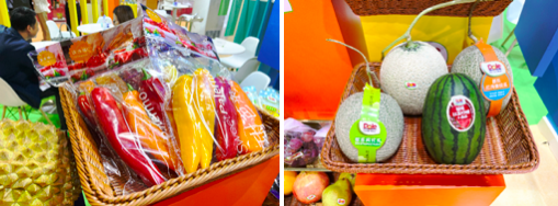Casi 50 tipos de frutas y verduras frescas de varios países asiáticos se exponen en AFL, y los productos de Dole son conocidos internacionalmente por su alta calidad