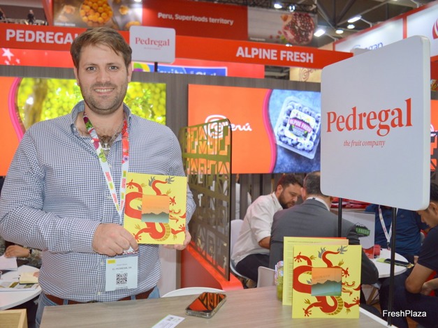 El Pedregal es una empresa familiar con 27 años de trayectoria, propiedad de dos familias con un largo historial de exportaciones a China y Asia. Exportan principalmente uva de mesa y también tienen un proyecto con aguacate, dice Fattore, quien andaba ajetreado en su stand en el pabellón de Perú en Asia Fruit Logistica 2023.