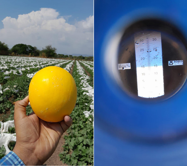 "Known You Seeds, el obtentor taiwanés del Limelon, está también trabajando en el desarrollo de esta línea, tratando de obtener variedades con resistencias mejoradas y tamaños más comerciales", continúa Hans. "Además del Limelon, estamos también ensayando un nuevo y prometedor melón amarillo con un tamaño más pequeño y 'personal'. Cada unidad pesa entre 600 y 900 gramos".