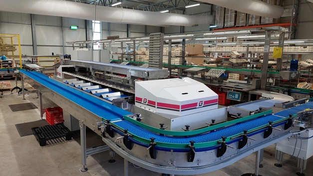 "Finalmente, un operador situado al final de la línea coloca esta fruta dentro de la tarrina, que continúa a lo largo de la cinta de transporte. Nuestras máquinas se pueden conectar a cualquier máquina envasadora o flowpack".