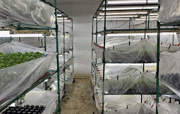 Tras injertarlas, las plantas se conservan en una cámara de crecimiento con alta humedad.