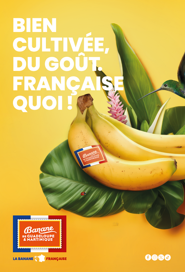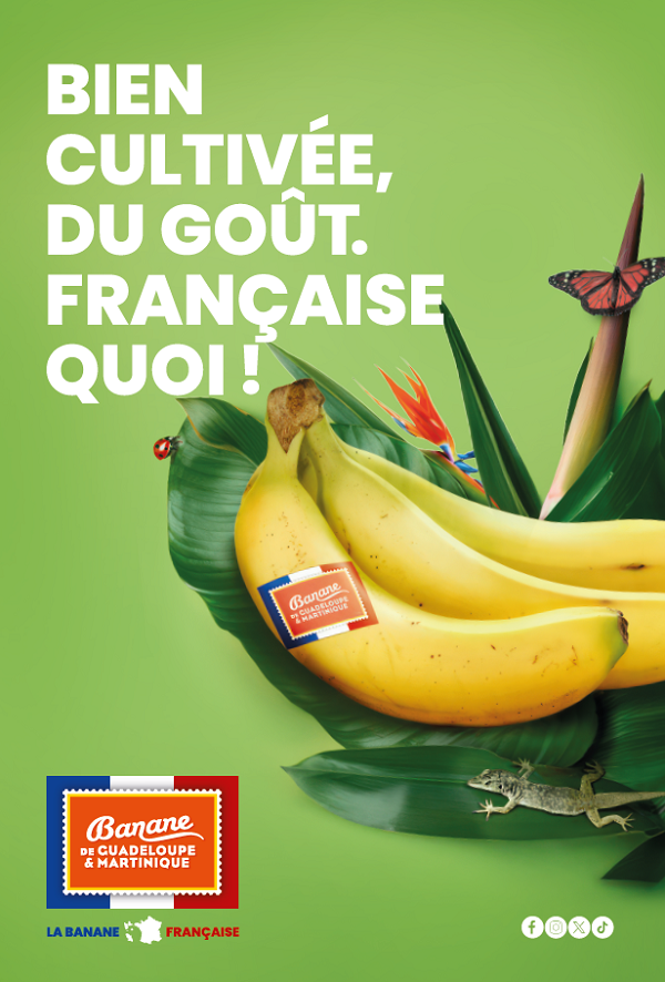 Los criterios de procedencia y sabor han sido, por tanto, elegidos como eje de la nueva campaña de carteles del sector en Francia, creada por la agencia Brainsonic. Los dos carteles destacan la biodiversidad de las plantaciones de bananas de Guadalupe y Martinica, con el siguiente eslogan: "Bien cultivada y sabrosa. ¡A la francesa!".