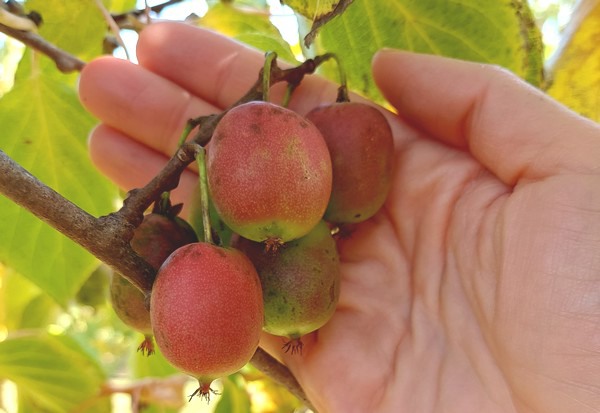 Su sabor único y su alto contenido vitamínico hablan especialmente en favor de la fruta. "El contenido de vitamina C es bastante superior al de los kiwis que se venden habitualmente en el mercado. La piel comestible también hace que el minikiwi sea más adecuado como aperitivo para consumir entre horas", explica Ehrenfeld, quien también produce frutas de pepita y espárragos verdes en su explotación. Además de vender la fruta fresca, parte de la producción se transforma en zumo, que a su vez se utiliza para hacer licor.