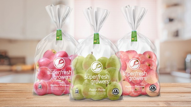 Superfresh Growers® se complace en presentar la primera bolsa para fruta del sector de la manzana y la pera fabricada con plástico reciclado posconsumo (PCR).
