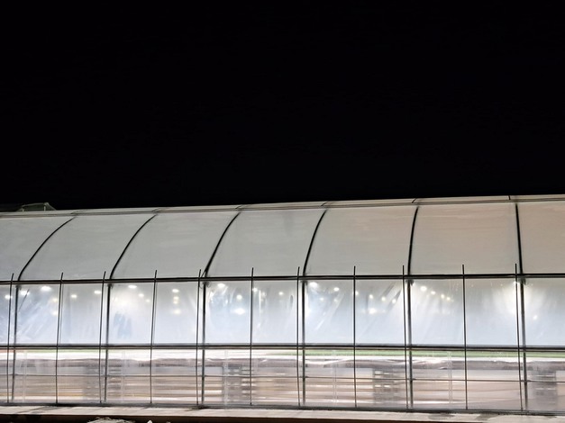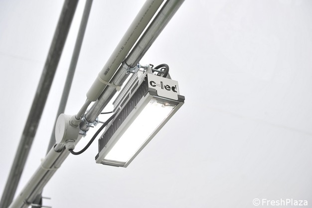 En febrero y marzo la luz solar escasea, por lo que la iluminación artificial, calibrada según las necesidades de las plantas de melón y sandía, sirve para favorecer el crecimiento. "Observé que las plantas sometidas a la luz artificial crecen mejor, no tienen el problema de alargar los entrenudos y, cuando luego se trasplantan al campo, muestran mayor uniformidad", continúa el técnico.