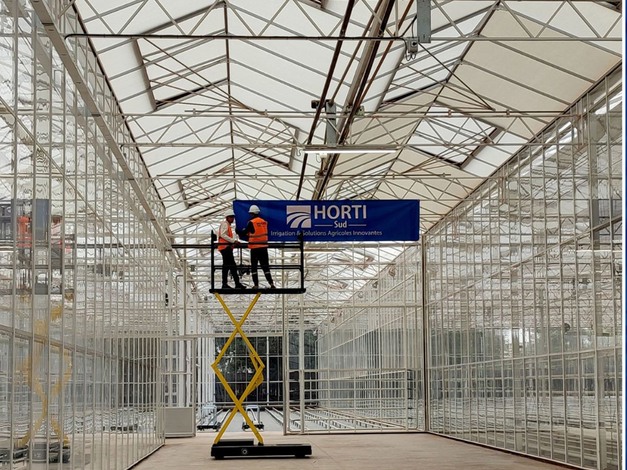 Entre los invernaderos canarios y los invernaderos de alta tecnología que el modelo económico no puede permitirse, Horti Sud ofrece un modelo intermedio. Belhouari explica: "Ofrecemos mejoras como pantallas con mallas de sombreo y sistemas de niebla. Estas mallas se extienden sobre los invernaderos y limitan el efecto de la radiación solar, lo cual reduce la temperatura dentro del invernadero, pero incide sobre los rendimientos al absorber las ondas luminosas necesarias para la fotosíntesis. La niebla o el sistema de nebulización se aplica en forma de pulverización dentro de los invernaderos y, al evaporarse, baja la temperatura. El agua se filtra, se presuriza a 5 bares y se encauza a través de las boquillas instaladas sobre los cultivos. El sistema consume energía principalmente para la sobrepresurización del agua, y como el sistema se utiliza un máximo de un mes al año, es coste es inapreciable, si se compra con el coste del riego que se practica en todo el cultivo".