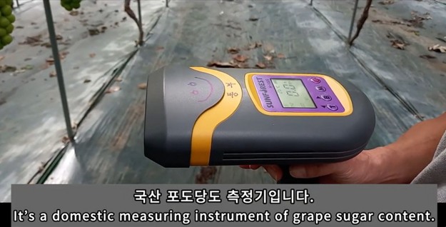 La empresa ha desarrollado una herramienta dedicada a las uvas Shine Muscat, que mide el contenido de azúcar y la madurez de la fruta. La herramienta se puede llevar en la mano y es muy fácil de usar.
