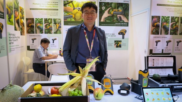 "Con un dispositivo Sunforest, los productores pueden obtener información precisa sobre la dulzura, la materia seca y los defectos internos de la fruta mientras esta aún cuelga del árbol. En gran medida, ahorra pérdidas de producto y proporciona una gran eficacia", explica el director general, Jay Hwang.