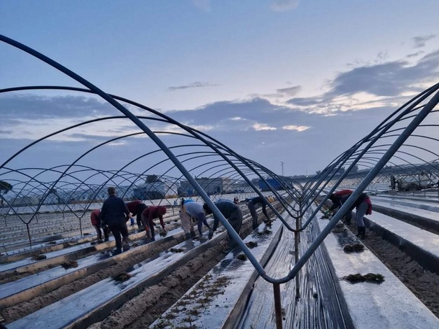 La mano de obra es un elemento indispensable en la producción de fresas; solo en la plantación se generan unos 10.000 puestos de trabajo que se incrementan en los meses siguientes en los que se pone en marcha la recolección. No obstante, encontrar la mano de obra suficiente es cada año un desafío.