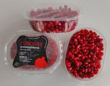 Las granadas de la variedad comercial Wonderful también se empezaron a cosechar hace aproximadamente una semana. Vogelsang dice que "los volúmenes han ido aumentando en los últimos años y este año empezamos la nueva temporada también con buenas perspectivas en este sentido. Esta zona de producción también se beneficia claramente de los excelentes sistemas de riego disponibles. Disponemos de una gran línea de productos, que incluye nuestras semillas de granada. Las semillas se procesan en origen y luego se envasan y comercializan en bandejas con tapa de 80 o 150 gramos. Se trata de un producto que está ganando cada vez más aceptación entre los consumidores".