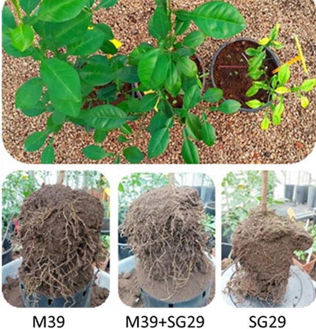La inoculación del aislado antiCTV obtenido del proyecto SIRPA (M39) no causa ningún síntoma en plántulas de naranja amarga inoculadas experimentalmente y las protege de la infección con un aislado agresivo prevalente en Sicilia (SG29). La inoculación de SG29 en plántulas desprotegidas provoca un marcado color amarillento, acortamiento de los entrenudos y hojas pequeñas y daños al sistema radicular.