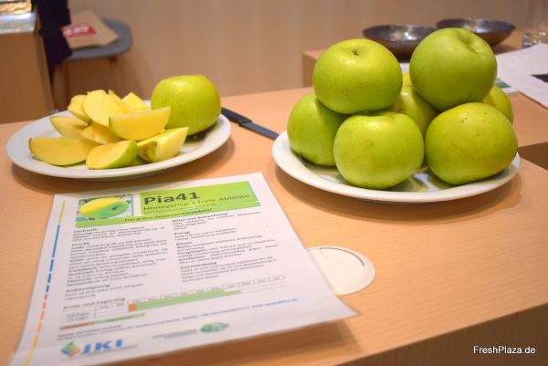 Andreas Peil, del Institute for Breeding Research on Fruit del Julius Kühn Institute, presentó en la feria Anuga de este año la nueva variedad de manzana verde Pia 41, que él ayudó a desarrollar. "Todo empezó con un cruce en 2005, y las semillas se sembraron un año después y se seleccionaron, propagaron y probaron en diferentes entornos durante varios años", explica Peil. "La variedad resultó ser tan buena que solicitamos y recibimos la protección de obtención vegetal. Nuestro objetivo es crear mercado y demanda en todo el país mediante la comercialización directa".
