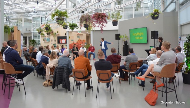 La horticultura de invernadero espera destacar en el futuro con una respuesta adecuada a los desafíos a los que se enfrenta el sector alimentario, sin convertirse en un "lobby clásico". Las personas que apoyan la iniciativa, y cada vez son más, como se pudo constatar cuando alrededor de las seis de la tarde la sala se llenó en espera del debate final en el World Horti Center, también esperan colaborar con las organizaciones no gubernamentales.