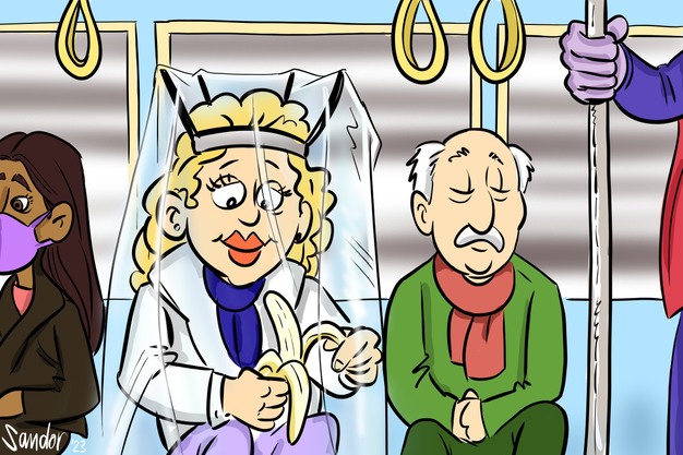 Un vídeo de una pasajera de un tren comiendo un plátano, envuelta en una bolsa de plástico gigante, arrasó en Internet. Las imágenes fueron grabadas por un compañero de viaje llamado Wang en Wuhan, China. "Aunque hay brotes esporádicos de coronavirus en Wuhan, parece un poco extremo que esta mujer se proteja de esta manera", escribió Wang.