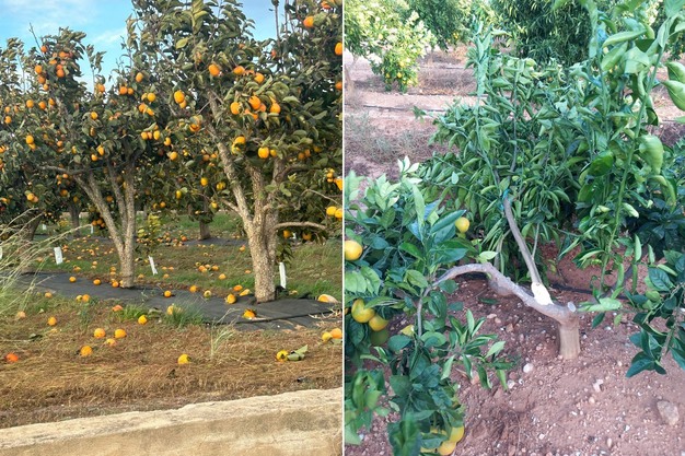 Los cultivos donde se observan mayores daños son los que se encuentran en la actualidad en plena campaña de recolección como es el caso de cítricos, kaki y aguacate.