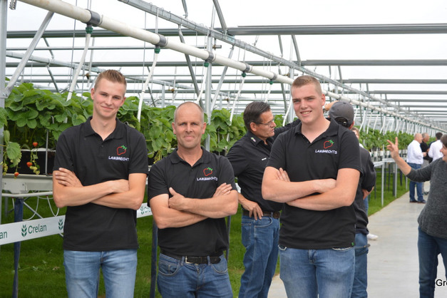 La familia tiene un terreno en Bélgica que solía albergar un vivero de árboles, pero que ahora cuenta con un invernadero de film de 2,2 hectáreas. No es el primer invernadero de estos productores de fresas. Kris Lambrechts y su mujer, Tinne Peeters, se hicieron cargo de la empresa de los padres de Kris en 2001. Poco a poco fueron creciendo hasta alcanzar más de 12 hectáreas. Los dos productores y sus hijos, Dries y Stijn, se dedican al cultivo en invernaderos de cristal y plástico y en estanterías.