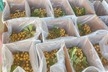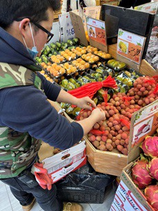 Derecha: embolsado de lichis sudafricanos en el acto en una tienda especializada asiática en Flushing, Nueva York.