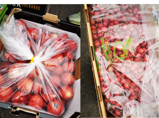 Izquierda: nectarinas australianas. Derecha: cerezas chilenas.