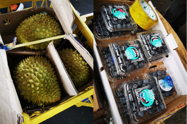 Izquierda: durianes vietnamitas Kanyao. Derecha: arándanos.