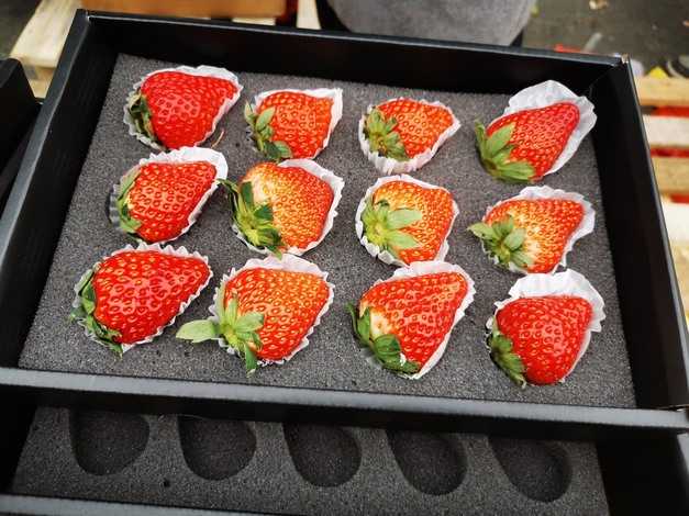 En cuanto a las frutas nacionales, las naranjas Papagan de Sichuan son los cítricos más comunes, y llegaron al mercado antes. Debido a la gran popularidad en el mercado y a los buenos precios de las naranjas Papagan en los últimos años, el número de comerciantes dedicados a la fruta este año ha aumentado significativamente en comparación con el pasado. Además, se ha ofrecido en el mercado una pequeña cantidad de fresas de invierno. Los comerciantes dicen que las fresas se producen en Dandong y salieron al mercado a principios de este año. Actualmente se venden a unos 40 ¥ por caja (400 gramos).