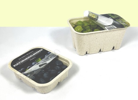 Envases de pulpa del mismo tamaño que las bandejas de plástico para uvas de mesa (modelo D) o arándanos y otras frutas pequeñas (modelo H) - Foto: Carton Pack.