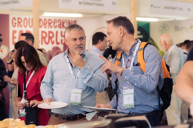 Charl Dubois, ejecutivo comercial en Capespan, conversando con Gerd Burmester, de VECS (Perú). Fotos de Bradley Urion.