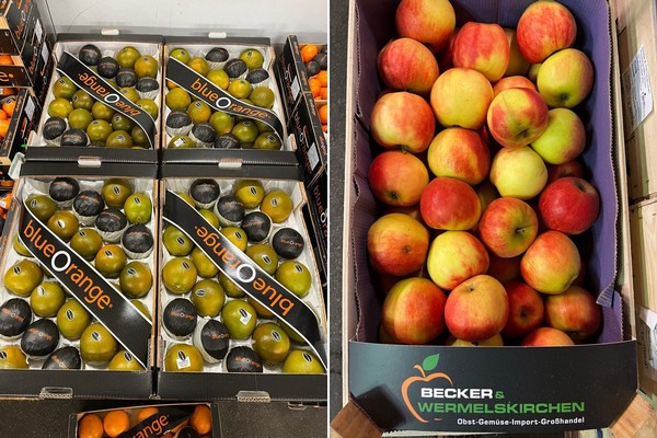 La marca de cítricos Blue Orange y las manzanas de la región de Altes Land.