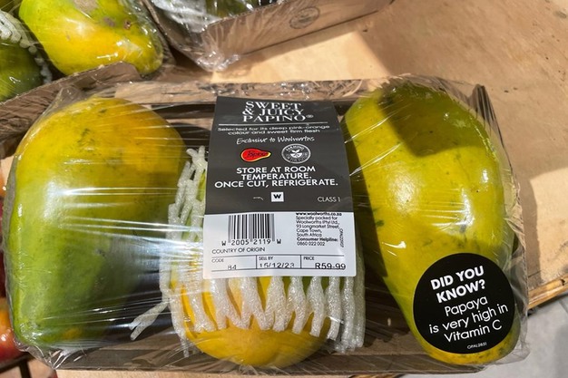 Papayas en un retailer de alta gama en Ciudad del Cabo en la actualidad.