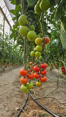 Con un 34% del total de la producción comercializada entre los principales hortícolas ecológicos de invernadero en 2022/23, según datos compartidos por el Observatorio de Precios y Mercados, el tomate ha sido el líder en producción ecológica en los invernaderos de Almería una campaña más, en la que el tomate rama ha pasado a ser el tipo más representativo, con una participación del 48% de todos los tomates comercializados, desbancando por primera vez al tomate cherry.