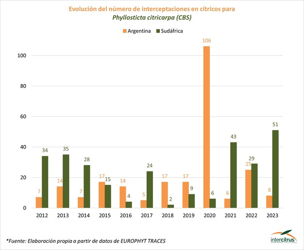“Durante estos años, especialmente desde que volvieron a repuntar las interceptaciones sudafricanas por mancha negra a partir de 2021, la patronal sudafricana ha tratado de reducir esta enfermedad a una ‘cuestión cosmética, que no afecta a la belleza de la fruta ni a su excelente calidad de consumo’. En las últimas manifestaciones del CGA a este respecto añadían que ‘tratar el CBS cosméticamente es fácil, pero fumigar repetidamente para que la fruta esté siempre limpia según la normativa de la UE es suicida e inútil, ya que la fruta en sí no es una vía para la enfermedad’”, recuerda la responsable de Intercitrus.