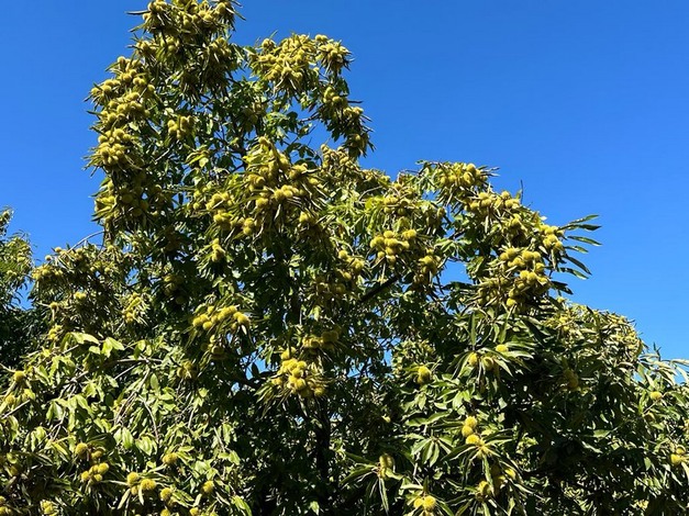 “Este año hemos seguido teniendo ese problema, que ha dejado un impacto en la producción, pero sobre todo lo ha hecho el clima”, señala. “Después de un verano que fue perfecto para la campaña, entre el 20 de septiembre y el 15 de octubre tuvimos casi un mes seguidos de temperaturas por encima de 30 grados. Con la humedad de las lluvias del verano y ese calor, los hongos lo han tenido muy fácil para estropear la fruta y por eso no solo la producción ha sido baja, sino que también ha sido baja la calidad y muchas de las castañas no han sido comerciales”.