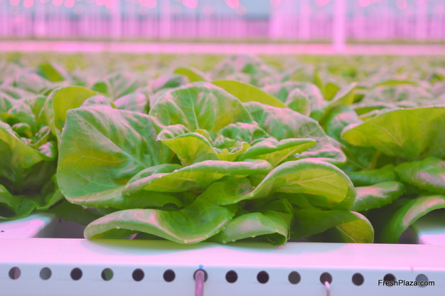 Tríos de lechuga poco antes de la cosecha. Como la lechuga no crece en el suelo, se mantiene limpia y no necesita lavarse tras la cosecha.