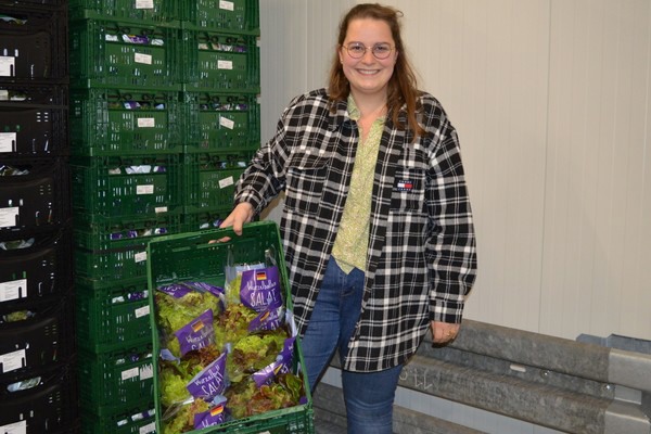 La lechuga recién cosechada se transporta en una cinta transportadora hasta el departamento de procesado y envasado. La lechuga se envasa en bolsas especiales y se entrega en cajas de EPS a supermercados de toda Alemania. Gracias a que se envasa con raíz, la lechuga se mantiene fresca durante varios días más que la lechuga convencional.