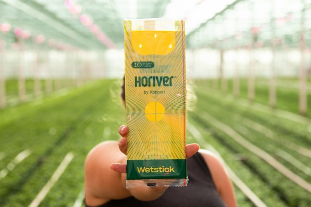 Entre los productos que desde ahora se comercializan con la marca Horiver se encuentran las placas cromotrópicas adhesivas y las bandas adhesivas Rollertrap. Las placas adhesivas Horiver permiten detectar plagas en una fase temprana para luego combatirlas biológicamente. Esto evita el uso innecesario de agentes químicos. Además, al realizar recuentos periódicamente, queda claro cuándo entran las plagas al invernadero, cómo se desarrollan y cuándo alcanzarán su punto máximo de desarrollo. De esta manera, el productor está mejor preparado ante posibles amenazas.